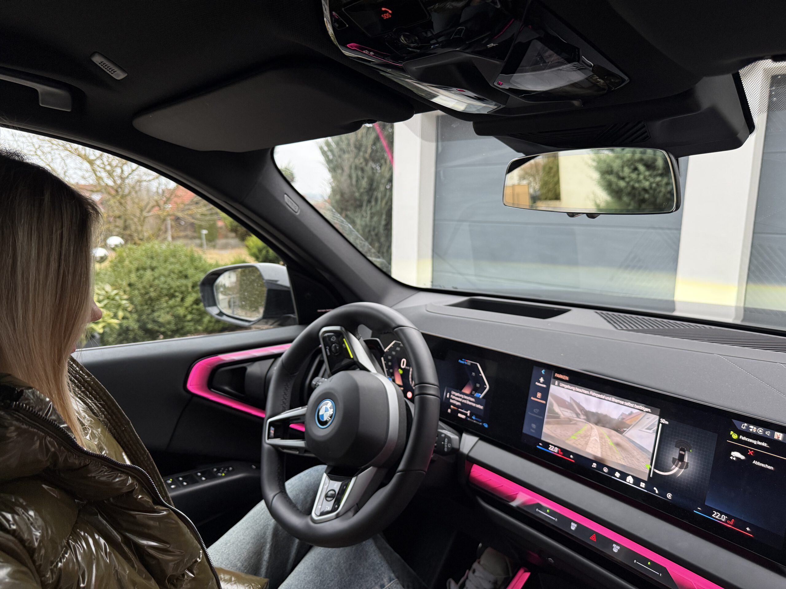 Dieses Gefühl spiegelt sich auch in dem Bild wider, das mich zeigt, wie ich unser neues Auto zum ersten Mal vollautomatisch aus dem Hof ausparken ließ. Während das Fahrzeug selbstständig lenkte und reagierte, war ich gleichermaßen fasziniert wie angespannt. Einerseits beeindruckte mich die Präzision der Technik, andererseits blieb die leise Sorge, dass das Auto irgendwo anecken könnte. Gerade dieser Moment machte deutlich, wie ungewohnt es ist, Kontrolle abzugeben – selbst dann, wenn die Technik objektiv zuverlässiger wirkt als der Mensch.