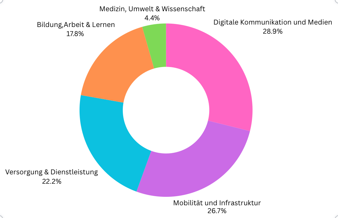 Knapp dahinter folgt der Bereich Mobilität und Infrastruktur. 12 (≈ 27 %)